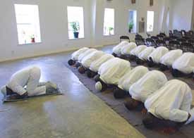 Inmates at the Hutchins State Jail in Texas pray during an Islamic education program. (AP photo) |