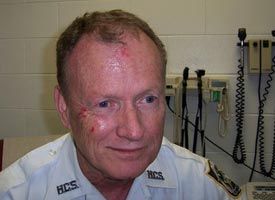 Deputy Kenneth Moon, a 22-year veteran, was at his desk inside a jail pod Monday when Douglas Burden charged him and put him in a chokehold. (HCSO photo) |