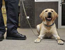 ![]() Rheana, a yellow lab, waits for the command to search with her partner, Corrections Officer Sam Ducharme, at the Department of Correction in Wethersfield, Conn. Connecticut is among several states turning to dogs to help them find cell phones smuggled into state prisons. (AP Photo) |